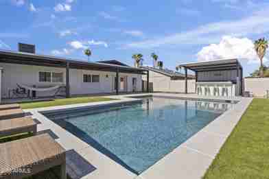 Lifestyle is Included with this fully Remodeled Modern Interiors Open Floorplan. 4 Bedroom, 2 Bathroom, 1953 sq ft, Gourmet Kitchen featuring a full Drawer Quartz Island & extended buffet area. Upgrades Include All SS appliances, Washer/Dryer, Cooktop Stove, Microwave, Refrigerator, and custom Lighting. Dining area includes a cabinetry Built In Bar & Buffet. Resort Backyard includes; Sparkling Swimming Pool w/Baja Deck, Safety Removable Mesh fencing, Putting Green, BBQ & Bar Pergola w/Long extended Covered Patio. Perfectly situated near Arizona State University, Tempe Marketplace, vibrant Mill Avenue, & with easy access to Loop 101 and US-60, this home offers unmatched style, comfort, & convenience for families or professionals. Location, Location, Location.