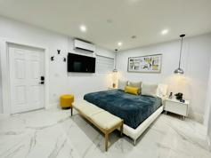 Brand new fully furnished efficiency in the heart of Calusa (Kendall, zip code 33186) with a private entrance featuring smart access and two assigned parking spaces. This beautiful space was designed with top of the line finishes to make you feel at home right away. New appliances including independently controlled AC, 55" smart TV, new floors, new kitchen cabinets with ample storage space, freshly painted, spacious main room with a closet and new private bathroom. The studio is ready to move in...includes king bed, brand new king mattress, two nightstands and stylish designer decor. We can discuss unfurnished rental if preferred. Calusa is a beautiful and family oriented neighborhood near to several shopping centers, restaurants, parks, hospitals and easy waking to public transit (0.3 miles). Must see, I'm sure you will love it. Nuevo estudio completamente amueblado en el corazon de Calusa (Kendall) con entrada privada con acceso inteligente y dos espacios de estacionamiento asignados. Este hermoso espacio fue disenado con acabados de primera linea para que te sientas como en casa de inmediato. Electrodomesticos nuevos que incluyen aire acondicionado con control independiente, pisos nuevos, gabinetes de cocina nuevos con amplio espacio de almacenamiento, recien pintado, habitacion principal espaciosa con armario y bano privado nuevo. El estudio esta listo para entrar a vivir... incluye una cama King, un colchon King nuevo, dos mesas de noche y una elegante decoracion de diseno. Podemos discutir el alquiler sin muebles si lo prefiere. Calusa es un vecindario hermoso y familiar cerca de varios centros comerciales, restaurantes, parques, hospitales y facil acceso al transporte publico (0,3 millas). Debes verlo, estoy segura de que te encantara.