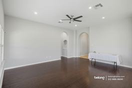 Offering 4 bedrooms, 2 bathrooms, and a bright open layout, this Hutto home combines comfort, style, and everyday convenience! A spacious living area sits at the heart of the layout, highlighted by tall windows and neutral tones that make it easy to relax or gather with friends. Your living space transitions into the dining nook, creating a natural spot for daily meals or weekend celebrations.