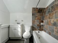 The bathroom features modern fixtures, and the apartment is freshly painted and move-in ready.