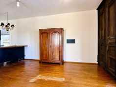 Apartment B is the middle apartment in a mixed-use building. The home features high ceilings, wood flooring throughout, and lots of windows that provide an abundance of natural light. The efficient kitchenette has two refrigerators and plenty of cabinet space. Home also comes equipped with an in-unit washer and dryer.