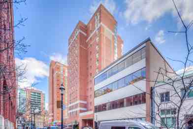 Sophisticated Corner Suite for Lease in the Heart of Downtown Toronto! Welcome to Suite 801 @ 95 Lombard Street, a rare offering in the boutique St. James Square a well-managed and quietly tucked-away building just steps from the St. Lawrence Market and Financial District. This spacious 2 -bedroom + den corner suite offers over 1,000 sq ft of well-designed interior living space, complete with modern upgrades, natural light, and an intelligent floor plan perfect for professionals, creatives, or couples seeking refined urban living. The open-concept main living area features floor-to-ceiling windows with unobstructed south and east-facing city views, wide-plank hardwood flooring throughout, and a cozy electric fireplace framed by custom built-in shelving. The renovated kitchen is equipped with stainless steel LG appliances, a windowed cooking area, under-cabinet lighting, stone countertops, and a versatile island ideal for casual dining or prep space. A custom bar area with built-in wine rack, bar fridge, and additional storage adds flair and functionality, perfect for entertaining. The oversized primary bedroom is a true retreat, featuring two large windows, an expansive walk-in closet/dressing room with built-in organizers, and a private 4-piece semi-ensuite with heated tile floors and soaker tub. The den offers flexible utility as a walk-in closet, storage space, or dedicated work-from-home zone. An additional powder room at the front entry and an oversized coat closet add even more convenience to this smartly laid-out suite. Residents of 95 Lombard enjoy access to excellent amenities, including a gym, sauna, party/meeting room, and secure building entry with concierge service. Tucked on a quiet side street just moments from St. Lawrence Market, St. James Park, King & Queen Street transit, the PATH network, and a host of top-rated restaurants and cafés, the location is ideal for those seeking both vibrancy and calm in the downtown core.