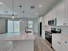Welcome to your new home in NE Cape Coral! This beautiful 4-bedroom, 2-bath + den residence offers over 1,914 sqft of open-concept living space. Inside, you'll enjoy luxury vinyl plank flooring throughout, a bright kitchen with quartz countertops, designer finishes and ample storage. The den is ideal for a home office or guest room.
