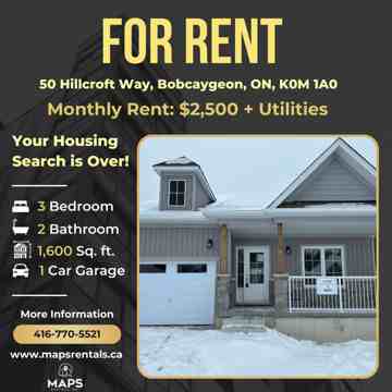 Welcome to 50 Hillcroft Way, a delightful 3-bedroom, 2-bathroom bungalow in the heart of Bobcaygeon. Boasting nearly 1,600 sq. ft. of thoughtfully designed living space, this home is perfect for families or retirees seeking a peaceful and comfortable lifestyle. Located in a serene neighbourhood, this property offers the best of both worlds—modern conveniences and the tranquil charm of Ontario’s cottage country.