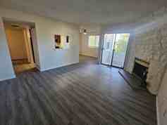 This home includes a large bedroom with an additional sink and vanity, a comfortable living room with a wood-burning fireplace, a separate dining area, and a private patio. Recent updates feature new flooring, modern appliances, a brand new tub/shower combo, new lighting fixtures, and an in-unit washer and dryer. A reserved parking space is included, along with convenient access to the community pool, tennis courts, and mailboxes.