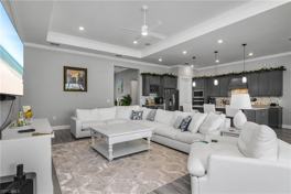 WELCOME TO THIS LUXURIOUS FLORIDA LIFESTYLE VACATION HOME! Short Term and Seasonal Lease Options Available. Your Florida Dream Getaway awaits in this stunning fully furnished Stellar Model built by Pulte with a custom pool and spa overlooking a lake. Located in the amenity filled resort community of Verdana Village! This home boasts 3 spacious bedrooms, a private den, and 3 full bathrooms, offering plenty of room and privacy for family and friends to relax in comfort and style. The heart of the home is its open concept living space, where a chef's kitchen with quartz countertops and stainless-steel appliances flows seamlessly into the great room. Step through sliding glass doors and you're instantly transported to your own resort-style oasis - a custom pool and spa overlooking a sparkling lake, an outdoor kitchen and grill, outdoor TV, panoramic screened lanai for the perfect spot for soaking up the sunshine, sipping cocktails at sunset, or dining under the stars on the screened lanai. Your vacation lifestyle continues with access to Verdana Village's world-class amenities featuring a resort-style pool and spa with two sun decks, two zero entry points, waterfalls and four sunbeds in the center of the pool, a 40-person spa with waterfalls, indoor and outdoor restaurant and bars, adult-only Crafts Bar, live entertainment, cafe and mini bar, full gym, full indoor basketball court, indoor pickleball courts, outdoor pickleball courts, indoor tennis courts and outdoor tennis courts, playground, corn hole, hammocks, golf cart parking, onsite manager, pro shop, dog park, satellite pools and clubhouses, bocce courts and more! Verdana Village provides a vibrant clubhouse atmosphere with dining, events, and activities. Golf cart to the grocery store, nail salon, restaurants, and more. Close to RSW Intl Airport, FGCU, Miromar Outlets, and the beautiful Southwest Florida Beaches.