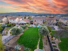 The home extends outdoors to a resort-style backyard oasis featuring a remodeled pool and spa, expansive lush green lawn, and ample space for outdoor entertaining. Thoughtful landscaping includes a creeping fig tree to cover block walls, four beautiful olive trees, and landscape lighting throughout the yard, enhancing the ambiance of this peaceful retreat.
