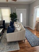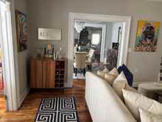 This 3 Bedroom/3 Bath 2-story home for rent sits on the corner lot in the beautiful historic Westview Atlanta neighborhood. Room 1: downstairs daybed, Room 2: upstairs twin beds, Room 3: Master bedroom with King bed. One full bathroom is located downstairs, and two full bathrooms are located upstairs.
