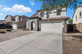 Surprise Farms! This two-story 4 bedroom/2.5 bath includes separate living and family rooms, open kitchen with large island, refrigerator, dishwasher and microwave. Ceiling fans throughout the home! Large primary bedroom with nice sized closet and bathroom with separate tub and shower and dual sinks. EZ Care landscaping in front and back. Minutes to Loop 303 and Bell Road shopping!!