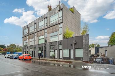 Sophisticated design and commuter convenience meet in this 2-bedroom, 1.5-bath townhome offering views of Mount Rainier and the city skyline. A wall of windows fills the living area with natural light, highlighting the clean lines, tall ceilings, and elegant finishes. Whether you’re hosting friends or curling up with a book, this inviting space feels both modern and warm.