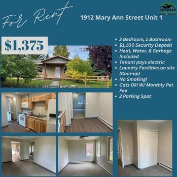 Save 1912 Mary Ann St, Fairbanks, AK is a 2 bedroom, 1 bathroom apartment for rent. It is located in the Van Horn Industrial Area neighborhood of Fairbanks. It has apartment amenities including on-site laundry, and carpet.