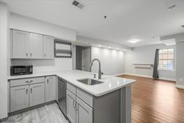 This Desirable First Floor unit has been Beautifully Remodeled! The Custom Kitchen with all new Cabinetry, Quartz Countertops, Stainless Steel Appliances were just installed a few years ago! Remainder of the units has also been Renovated, Including: Hardwood flooring throughout, moldings, barn door off kitchen into large laundry room, the 2 full bathrooms, and all the finishes display true pride in ownership. Both Bedrooms have hardwood floors, & boast Walk in Closets. Open Concept Living, Dining Rooms, & Kitchen w/ breakfast bar. Living Room offers tons of natural light, Hardwood Floors, Recessed Lighting, & glass door to Private Outdoor Patio with Storage area. In unit Laundry Room add to the Comfort and Convenience of this sought after Condo Unit. No stairs from Parking Lot into Unit! One Parking Spot included with Tons of Additional Spots available. Clubhouse with Gym & Event Room only steps away. Walk to Shopping & Public Transportation to NYC. NTN CREDIT / BACKGROUND CHECK, PROFF OF INCOME ARE REQUIRED. DO NOT MISS!!