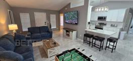 The well-designed floor plan of this lovely and newly-remodeled home makes efficient use of space, with updated modern lighting and a vaulted ceiling that adds a sense of scale and luxury in the main areas of the house. You'll find freshly-painted walls, TILE FLOORING flowing throughout, and a Living Room with a Plant Shelf and Sliding Glass Doors that look out onto a LARGE SCREENED LANAI. There are 2 Guest Bedrooms, a Guest Bath and a comfortable Master Bedroom just perfect for relaxing, with its Master Bath's Walk-in Shower and Walk-in Closet (all Cabinets are NEW with Quartz Countertops).