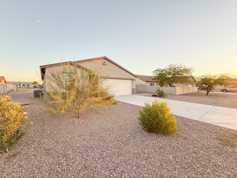 Modern 3/2 Arizona City Home - Spacious Layout & Oversized Backyard! This inviting home features wood-plank style and carpet flooring, a spacious living room, and a sleek kitchen with stainless steel appliances. The split master suite offers a dual-sink enclosed bath and walk-in closet, while cozy bedrooms and updated baths provide everyday comfort. Enjoy a covered patio, oversized backyard perfect for relaxing or entertaining, washer & dryer, and a 2-car garage for added convenience. Located in a quiet Arizona City neighborhood with easy access to shopping, dining, and outdoor recreation - this home has it all!