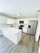 Spacious and centrally located unit with four bedrooms and two bathrooms. driveway parking, open concept kitchen with backyard. unit is the back one in the property. comes with washer and dryer, refrigerator, stove and central ac. quartz countertops. only asking for one month security deposit and first month for move in.