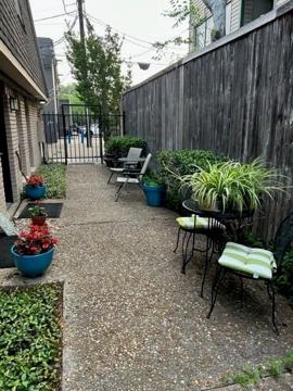 Wonderful apartment in the thriving Oaklawn area, with beautiful tree lined streets and walkability plus! This 2 bedroom and one half bath features hardwoods downstairs in the living areas, Cute courtyard area with landscaping in the front and a spacious patio yard in the back off of the dining room and kitchen. An abundance of recessed lighting in the living room, natural light, kitchen off of the dining and ample parking in the front and back areas of this gated community. The bedrooms upstairs are large and have nice closet spaces. Laundry in half bath downstairs. The bathroom up is updated and a nice half bath is downstairs with additional storage. Location location! Walk to many restaurants and shopping! Just a few blocks from the Park Cities. Excellent parking in both the front and back areas of the property and the complex is gated.
