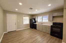 Beautifully Renovated 3 bed, 2 bath outside city limits off Gulf Hwy. Can lighting throughout. Vinyl wood plank flooring in gray tones. New gray kitchen cabinets. New dishwasher. Large outside storage, Covered parking. Washer/Dryer Connections. Central AC/Heat
