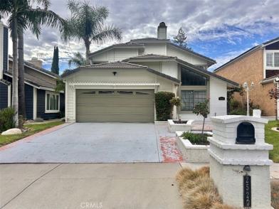 Welcome to this beautifully upgraded two-story home, tucked away on a peaceful cul-de-sac in a desirable Simi Valley neighborhood. Step through the front door and you are immediately greeted with an open, airy floor plan. To your left is the spacious living room with soaring ceilings and a dramatic triangular window that fills the space with natural light. To your right, the formal dining room provides the perfect setting for family gatherings and entertaining. Straight ahead, the comfortable carpeted staircase anchors the center of the home. Just before the stairs, you’ll find a convenient powder room and two additional storage closets along the wall. To the right of the dining room, the chef’s kitchen features custom cabinetry, a built-in refrigerator, professional-grade stove and oven, ample storage, and a breakfast nook. The breakfast area is enhanced by brand-new French doors that open out to the inviting backyard. The backyard has been thoughtfully designed for entertaining, with high-quality artificial turf, multiple seating areas, roses, fruit trees, and charming string lights that create a warm and welcoming ambiance in the evenings. Past the breakfast nook, with its own sliding door access from the backyard is a versatile multi-purpose room with new flooring—ideal for a playroom, office, or media space. Just off this area, the laundry room provides direct access to the two-car garage. Upstairs, the expansive primary suite sits to the right, boasting a thoughtfully redesigned spacious spa-like bathroom with a large tiled rain shower, dual sinks, and a custom walk-in closet with drawers, shelves, and hanging space for every need. To the left of the stairs are two additional bedrooms, each filled with natural light, and a beautifully upgraded secondary bathroom with double sinks and a walk-in shower. The landing area offers both a linen cabinet and an additional built-in cabinet with shelving, providing plenty of storage.