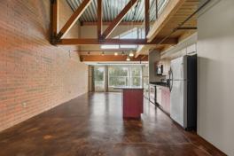 This exclusive 300 Hamilton penthouse offers 1,466 SF of modern industrial living with 2 bedrooms, 1.1 baths, soaring 18' ceilings, exposed wood beam trusses, and interior brick walls. The open-concept layout features a gourmet kitchen with granite countertops, large island, pantry, and stainless steel appliances flowing seamlessly into the living and dining areas. A versatile second-floor loft with a catwalk leads to a private terrace, ideal for a third bedroom, office, or den, while the primary suite includes its own private balcony with picturesque views. Both outdoor spaces are perfect for relaxing or entertaining. Located just steps from downtown Plymouth's shops, dining, and entertainment, the penthouse includes one covered/attached and one uncovered parking space and is available for lease now.