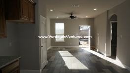 18-month lease. Spacious 4 bed, 2 bath duplex in Cleburne. Entry leads to open floorplan living, dining and kitchen. Kitchen provides generous cabinet storage & counter space, custom wood cabinetry, stainless steel sinks, pantry. Principal bedroom features spacious closet, private bath has vanity storage, porcelain sink, & counter space. Back door leads to private backyard, fenced with chainlink. Secondary bedrooms have ceiling fans. Spacious hall bathroom. Large laundry & utility room. This property offers high ceilings, central HVAC, tile & vinyl flooring & granite countertops throughout. Parking for 4+ vehicles in driveway. No street parking is available. Tenant responsible for electric utility, water utility, & lawn maintenance. Appliances, if any are present, are not warrantied items. No street parking is available. NO PETS. NO SMOKING. Visit our website to view other available listings, complete credit & rental criteria, application, and to request an appointment. verdegrisventures. com