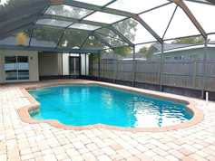 Wow! Stunning and recently renovated 4-bedroom, 3-bath home with in-ground pool and bonus accessory dwelling unit (ADU) on quiet circular street. Open floorplan features luxury stainless-appliance kitchen with large L-shaped granite-top island, eat-in area, with large windows and sliding doors overlooking the screened in patio and pool area. Expansive, L-shaped living-dining area is a flexible space for your recreation and entertainment needs. All LVP and ceramic tile flooring for easy maintenance. Two ensuite bedrooms on opposite sides of the house feature all new bathroom cabinets, fixtures and storage. One has a walk-in shower with multiple-showerheads for a relaxing water massage. The other has a large tub/shower with both overhead and hand-held showers. Two other spacious bedrooms share the third upgraded bathroom. Outside features a great air-conditioned ADU with access to a bathroom that could function as a guest room, hobby room, practice room for musicians, game room, library or quiet getaway place just because! Many additional closets throughout provide great storage. Large birdcage-enclosed inground pool is just outside the back doors and is accessible from the kitchen and one of the bedrooms. Attached two-car garage completes the package. Lawn care and pool maintenance included in rent.
