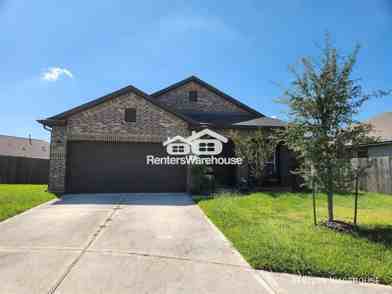 LOW Security Deposit Program available! FREE Utility Concierge at move-in! Stylish and sophisticated 3B/2B single-story home with pride of ownership throughout. Charming front porch with manicured flower beds and sleek modern entry. Wide foyer with tall ceilings opens to a seamless, open-concept living space. Light, bright kitchen offers room for a movable island; custom statement doors add a unique touch. Spacious primary suite with elegant gray/white bath, plus two bedrooms with large closets and a fresh secondary bath. Fully fenced backyard for privacy. Builders’ warranties still in effect and transferable. Enjoy a community center, splash pad, and pool, with easy access to Hwy 90, Beltway 8, and GP 99. Move-in ready! Pets accepted case-by-case with NO Pet Deposit (small monthly fee). SELF-SHOWINGS today! FAST approval!