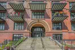 Walk into history with this stunning 3 bed, 2.5 bath condo, uniquely located in the former gymnasium of Union High School! This Gem in the Gym boasts 1,709 sq. ft. spanning 3 stories & includes the ONLY continuous 24 ft. south-facing window which leads out to your private balcony. Enjoy the spacious primary suite which includes heated floors & a jacuzzi tub. Other features include custom-built bookshelves, exposed brick walls, & in-unit laundry; this unit also includes two gated parking spaces. Residents enjoy amenities, including a rooftop pool & hot tub, gym, & a community room. This location offers an unbeatable urban lifestyle, located just steps away from Bridge Street's vibrant dining & entertainment scene!