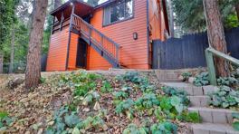 Charming cabin-style home in Crestline featuring 3 bedrooms and 2 bathrooms. The cozy living room with carpet flows into a galley kitchen complete with sleek black quartz counters and ample cabinet space, opening to the dining area with easy access to the back patio. The main level offers 1 bedroom and 1 bathroom, while the upper level includes 2 additional bedrooms and a full bath. Generous storage is found throughout, with closet space, an attic between the upstairs bedrooms, and even a basement—perfect for mountain living.