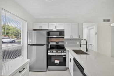 FIRST & SECURITY FOR MOVE IN with approved credit/background. Newly renovated 1BD/1BA in Coral Ridge waterfront boutique building! Features include new cabinetry, updated bathroom, stainless steel appliances, and impact windows/doors. Pets welcome ($20/mo pet rent). Tenant pays $67/mo for water/sewer/trash. Quick approval process. Laundry & large pool on site! Unbeatable sunsets, walkable neighborhood, minutes to Fort Lauderdale Beach, Galleria Mall, Downtown Fort Lauderdale and Wilton Manors! Enjoy modern living in a prime location! Units 1, 4 & 14 currently available.