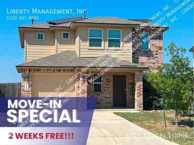 3 Bed 2 Bath 1631 sq ft Home in Whisper Falls. Solar Panels for reduced utility bills. Living/Dining Room Combo. Kitchen with Granite Counters, Breakfast Bar. Appliances include Fridge, Gas Stove, Microwave, Dishwasher, Washer and Dryer. Game Room upstairs. Primary Bedroom with Ceiling Fan, Walk-in Closet. Primary Bath with Shower/Tub Combo. Fenced Yard with Covered Patio. Garage with Opener, Water Softener. Experience the ultimate Resort-style living with amenities such as a Pool, Clubhouse, Cabanas, Playground, Basketball court, and Splash Pads. Plus, the community even has its own Lifestyle Director to help plan activities and events for residents. Easy access to Highway 90, 211, Lackland AFB, Shopping.