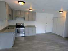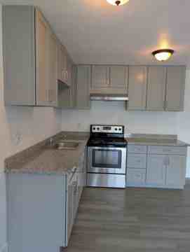 Like new, extra large 1 Bedroom apartment with kitchen island, granite counters, brand new cabinets, new flooring, new paint, in gated complex.