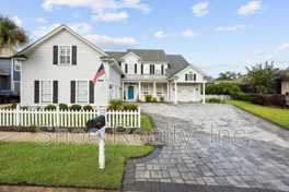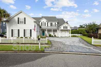 Discover the exquisite charm of this prestigious rental in the Paradise Moorings gated waterfront community, where your dream lifestyle awaits. This expansive home boasts nearly 4,000 SF, offering 5 generous bedrooms and 5 elegant bathrooms. The inviting southern-style porch welcomes you, while the grand staircase with custom wood and wrought iron spindles create a warm, sophisticated atmosphere throughout. Step into the heart of the home designed for inclusive entertaining and adorned with custom wainscoting, stacked stone gas log stove feature, windmill fan, upgraded lighting and plantation shutters. The flex room provides versatility, ideal for an office or playroom, while the laundry room with storage and a sink adds convenience. Retreat to the stunning primary suite, complete with a cozy sitting area, a walk-in closet, and a magazine-worthy en-suite featuring double vanities, a soaking tub, and a separate shower.