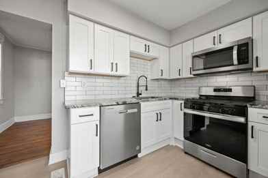 This freshly updated duplex blends historic neighborhood charm with modern convenience. Step inside to a spacious first-floor layout with plenty of room for entertaining—an open living and dining space flows into a sleek kitchen featuring stainless steel appliances, granite countertops, and timeless white shaker cabinets.