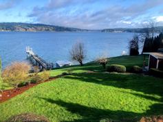 A Puget Sound private waterfront estate in Gig Harbor, WA is offered for rent for a minimum of one month, which can be extended by mutual agreement. The home is a spacious 3,328 sf NW contemporary beach home with 130 ft pf private tidelands and boat dock on Henderson Bay. *PLEASE NOTE- The property is only available fully furnished, with all utilities paid by the owner. There is ample storage inside & in the garage for anyone relocating with furniture. Located near the end of a dead end road and set down off the parking area, it offers quiet seclusion. The 3 bedroom, 3 bath home is surrounded by .83 acres of beautiful landscaping and lawns, which are maintained by the owner. There are expansive bay and sunset views from nearly all rooms, and continuing outdoors from multiple decks, a large covered patio and open brick fire pit. New carpeting throughout, including the generous master suite, which features a reading area, walk-in & 2nd closets, gas fireplace, new king-sized bed, large bathroom and its own privte deck with recliner chair. The tiled bathroom is exceptionaly spacious, with an oversized tub, huge walk-in, multi-head shower and double sink console. A second bedroom suite is upstairs with a wall of windows to take in the bay view. There is a new queen bed and private bath with shower. The location of a third bedroom is flexible. Currently in a large room/office on the main level, it can also be relocated to the downstairs with a private bath.' The living room has retained some of its original character with the local stone fireplace, built by the original owners, now converted to gas. Thereis a large leather sofa set and Smart 60" TV. Cable is installed and available for tenants to use on their personal accounts. Windows all across the front, offer wonderful views and a glass door opens directly onto the outdoor decks. The kitchen and dining/family area is an open plan, bright and spacious, with a large breakfast bar and direct outdoor access to the decks and to an adjacent covered patio. Kitchen eatures include, a new electric cooktop, built-in oven & microwave, full-sized refrigerator/freezer, diswasher, & solid suface countertops with integrated sinks. This property was adapted to accommodate a wheelchair and has ramping for alternative access and a wide, paved pathway from the house to the beach. There are no steps or thresholds on the main level. The rental period is flexible after the first month and if extended, application should be made at the initial booking. All utilities are included in the rent, including high-speed internet. Less than 1 mile from the Burnham Dr. exit on Hwy 16, shopping, schools , the Y , St. Anthony's Hospital and Gig Harbor town center are only a few minutes away. This is a perfect central commute to either Tacoma, 20 minutes to the east or Bremerton to the north. Shuttle service is available to Sea-Tac Airport and Seattle is approximately an hour's drive, or longer if cruising the scenic way, by ferry. Ranked by Travel Magazine, as one of the best small towns in Washington, and by Smithsonian Magazine as the 5th best in America, picturesque Gig Harbor retains much of its maritime history and fishing village charm, with net sheds, outstanding local museum, historic homes, art galleries, and small specialty shops and restaurants along the waterfront. There are boat tours of all kinds--kayaks in Gig Harbor Bay, cruises on Puget Sound and even a gondola ride. The natural scenery is spectacular, e..