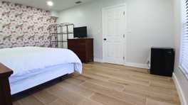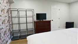 Furnished with a KING-Size bed, nightstands, desk, chair, mini-fridge, and TV. Secured with a private electronic lock.