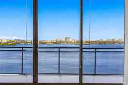 Experience elevated living in this newly remodeled 2 bed + den, 2 bath penthouse spanning 1,735 sq/ft with sweeping sunrise and sunset water views. Crafted with top-of-the-line finishes, the residence features wood flooring, a chef’s kitchen with stone countertops, and brand-new Samsung Bespoke Blue appliances including a matching washer/dryer. The spa-inspired primary bath offers a soaking tub, separate shower, dual vanity, and custom cabinetry. Two parking spaces and a large storage unit included. Rent covers upgraded high-speed internet, cable, and hot water. Amenities include a newly constructed pool, jacuzzi, and state-of-the-art fitness center in a premier waterfront setting. Easy to show. Call Listing Agent.