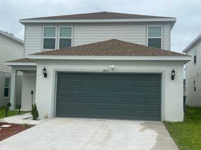 Brand-new 2024 2-story fenced home in Hartford Terrace, a recently built Davenport community off Hwy-27 and minutes from I-4 with quick access to Orlando, Lakeland, and major theme parks. Features 4 bed, 3 baths, 2,274 sq ft living (Lot 3,698 SqFt), central AC, 2-car garage with epoxy flooring, 1 bed/1 bath downstairs, loft and utility room upstairs, kitchen with island, pantry, stainless appliances, smart thermostat & doorbell. Master suite with walk-in closet. Rent includes 1G internet and Spectrum streaming TV with Amenities under construction, including a resort-style pool with cabana, sports field, playground, trails, and dog stations. Close to Publix, Walmart, AdventHealth, CVS, Walgreens, Lowe’s and more.