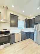 Inside, you’ll find a stunning chef’s kitchen complete with custom dark wood cabinetry, quartz countertops, a deep sink, stainless steel appliances, and a sleek vented range hood. The kitchen flows into the open living and dining area, where vaulted ceilings, recessed lighting, and wide-plank luxury vinyl floors create an elegant yet inviting atmosphere. The spacious living area is enhanced by a modern wood-and-iron staircase, large closets with louvered doors, and thoughtfully placed ceiling fans. Both bedrooms feature ample closet storage, oversized windows for natural light, and wood-style flooring that continues throughout the home for a seamless design. The bathrooms showcase tile flooring, contemporary vanities, matte black fixtures, and crisp neutral tones, bringing a spa-like feel to your daily routine. Additional touches include energy-efficient windows, central heating and cooling, an in-unit laundry hookup, and private covered front porch. Plus, residents enjoy parking in the rear of the building via a convenient on-site parking lot. Perfectly located, the property is minutes from restaurants, shops, banks, medical offices, the public library, and Emma C. Chase Elementary. Enjoy outdoor recreation at the nearby D & H Canal Linear Park Trail, Wurtsboro Ridge State Forest, and Yankee Lake. Commuters will love the quick access to Route 209 and the Sullivan Street intersection, leading directly to Route 17 (Interstate 86). From there, you’re only minutes from Resorts World Catskills Casino, Kartrite Indoor Water Park, and just a 40-minute drive to LEGOLAND New York Resort. Major medical care is also within reach — less than 30 minutes to Garnet Health Medical Center – Catskills and Garnet Health Medical Center – Middletown. This residence combines modern luxury, thoughtful design, parking convenience, and a prime location, making it an exceptional rental opportunity in the Hudson Valley.