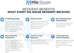 • $20 Monthly Resident Benefits Fee. This is a monthly mandatory fee charged to all residents and retained by His House Property Management. The advertised Rent will be increased by $20 per month. This fee is due at the time the tenant takes possession.