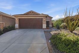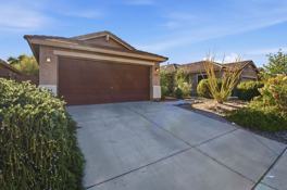 Do not miss this wonderful 3 bedroom / 2 bathroom home with two car garage. Enter and find a split floor plan with two-tone paint, carpet/tile flooring, and comfortable living. The kitchen comes complete with appliances including refrigerator, upgraded countertops, and a breakfast bar! The master bedroom features an attached full bathroom with upgraded countertops. Step outside to find a covered patio and low maintenance desert landscaping. 1 MONTH FREE WITH A 13 MONTH LEASE!