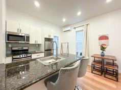 Welcome to this beautifully updated one-bedroom condo located on the historic, tree-lined Pine Street in Rittenhouse Square. This bright and inviting 480 sq. ft. home features hardwood floors throughout, large bay windows, and a modern kitchen with granite countertops, stainless steel appliances, and a breakfast bar that opens to the living area. The bedroom offers excellent natural light and ample space, while the updated bathroom includes a tiled shower and an in-unit washer and dryer for added convenience.