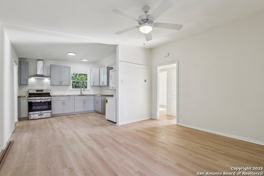 Charming 4 Bed / 2 Bath Single-Story in San Antonio's East Side! Welcome home to this move-in ready gem featuring fresh paint throughout and an inviting open floorplan-perfect for everyday living and entertaining. The chef's kitchen offers abundant storage, a gas cooking stainless steel stove, stacked washer and dryer, and a bright window overlooking the backyard, creating a warm and welcoming space. Enjoy easy maintenance with no carpet throughout the home. The spacious primary bedroom includes a private en-suite bath and outdoor access, while three additional bedrooms and a full bath complete the thoughtful layout. Step outside to your large backyard shaded by mature trees, ideal for relaxing, playing, or hosting gatherings. Conveniently located near I10/410/35, Downtown San Antonio, Ft Sam Houston, shopping and entertainment! Don't miss your chance to reside in this beautiful home - schedule your showing today!