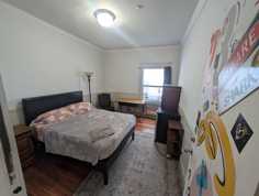 We have several bedrooms of different sizes available in our 40 unit building in the heart of the Mission. We're all on one floor with a brand new stainless steel kitchen, 2 bathrooms (with multiple separate rainfall showers, toilets, urinals, bathtub, hand dryers), co-working office, media/living room, and outdoor courtyard. Furnished/unfurnished or single/double occupancy is the same rate, and any room is available with or without (or partial) furnishings and mini fridge.