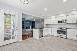 Main floor offers a bright living room with gas fireplace, open kitchen, formal dining, and half bath.