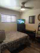 I have owned my home for 23 years have made many many renovations main house is like duplex Plus guest House out back I rent separately from the main area which is where the bedroom is right next to the bathroom with a refrigerator and microwave in the room locking door full use of living room and main kitchen plus laundry backyard with pool and fire pit