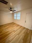Two cozy bedrooms and a full bathroom are located on the opposite side of the unit. The bathroom’s modern upgrades provide a bright, refreshing space. Luxury vinyl plank flooring runs seamlessly throughout the home, tying each room together with a durable and attractive finish.