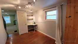 The kitchen features updated appliances, a convenient pass-through to the living room, and an efficient layout for everyday cooking. The first floor also offers a private office, full bath, laundry area, and a comfortable bedroom that would make a great spare-room for guests. Upstairs, the spacious primary bedroom spans the entire floor with vaulted ceilings, ample closet space and a peaceful, retreat-like feel.