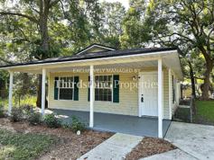 Welcome to this beautifully updated 3 bedroom, 2 bath home showcasing modern comfort and style. A charming covered front porch invites you inside to discover bright and durable vinyl plank flooring that extends throughout the home. The kitchen has been completely transformed, featuring white shaker cabinetry with ample storage, a stunning blue tile backsplash, bright quartz countertops, and stainless steel appliances, including an over-the-range microwave and dishwasher. Both bathrooms feature new vanities, while matching ceiling fans throughout the home help circulate cool air and enhance comfort. Large windows fill each room with abundant Florida sunlight, creating a warm and inviting atmosphere throughout. Washer and dryer hookups are available for added convenience. The backyard is fully fenced in. One off street parking spot is available. The residents are responsible for all utilities and lawn care. Pest control is included. Pets are welcome, breed and weight restrictions may apply. Application fee $55 per person 18 and over. Lease Term: 12 months.