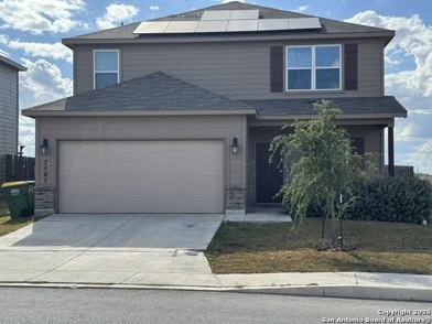 This modern two story home ha all four bedrooms on the second level. One bedroom could be another Den or playroom. All appliances are included. This home also has solar panels that will help on energy costs! It is a nice size at 1926 Square feet. This home is in the Judson School district and is close to IH-10, 35, 1604, Fort Sam, and Randolph AFB.