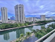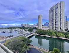 Welcome to Harbor View Plaza. 2 bed 2 bath with 2 (tandem/ covered/ assigned) parking. Unit comes furnished (negotiable). Beautiful mountain and canal views. Modern kitchen design with upgraded ceiling fan only, Great trade-wind breezes. Near Magic Island, Ala Moana Shopping Center, restaurants and beaches. Secure building with good staff.